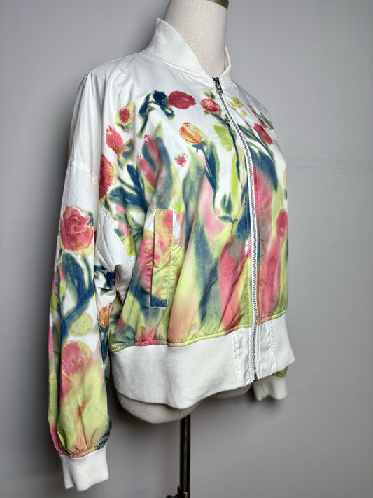 Women Size XS Nike White Floral Print Anna Deller Yee Collab Bomber Jacket NWT