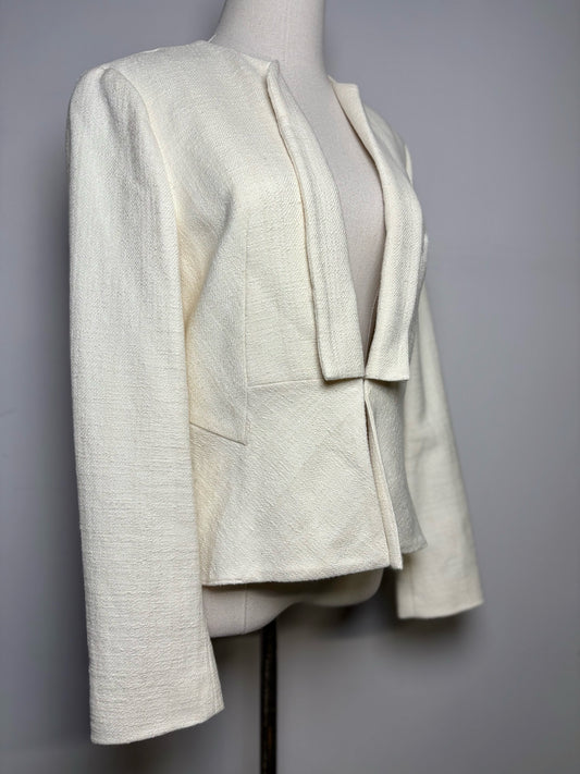 Women Size 6 Helmut Lang Off White Jacquard Asymmetric Hem Jacket