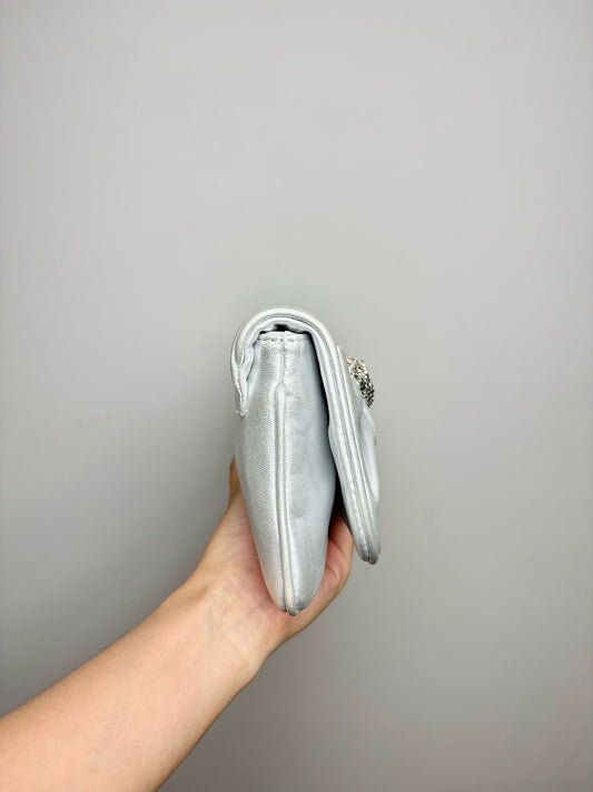 Guiseppe Zanotti Solid Leather Metallic Silver Clutch Purse