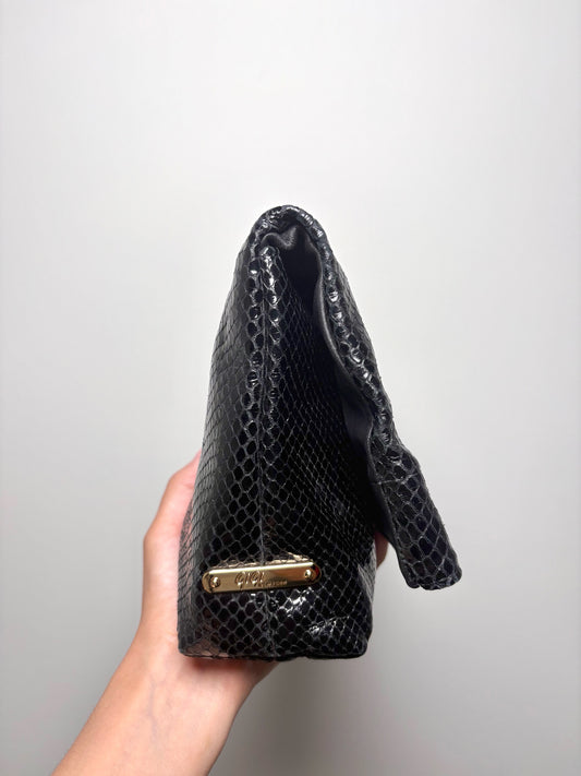 Gigi New York Python Embossed Leather Black Cowhide Clutch Purse