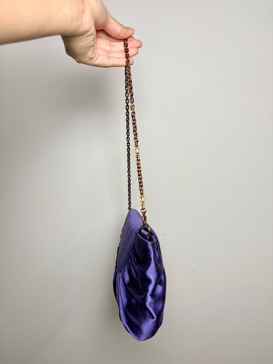 Escada Solid Satin Purple w/Gold Chain Shoulder/Clutch Purse