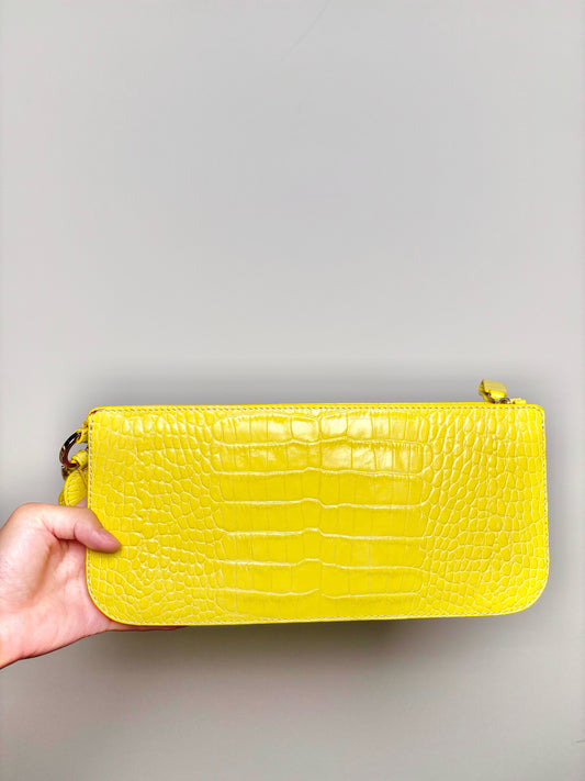 Valentino Croc Embossed Leather Yellow Cowhide Clutch Purse