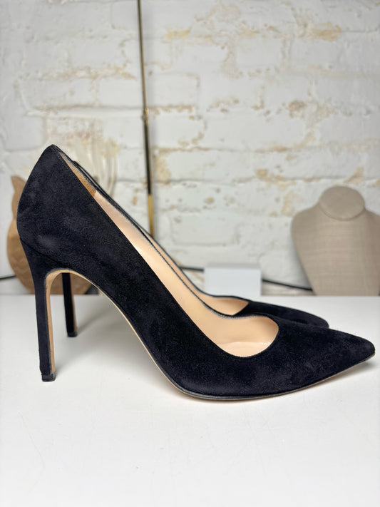 W Shoe Size 38.5 (7.5 US) Manolo Blahnik Black Leather Suede Heels