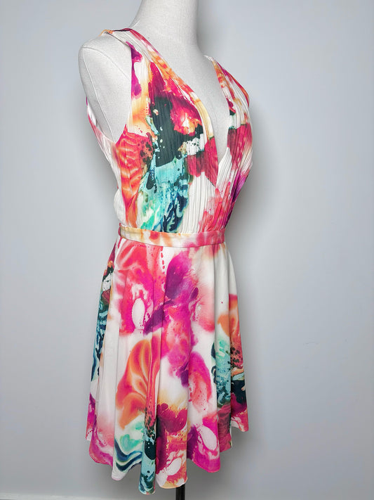 Women Size 10 Alice + Olivia Orange, pink, cream, green Watercolor floral Dress