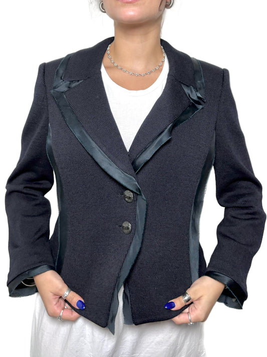 Women Size S Yves Saint Laurent Black Solid Velvet Scallop Trim Jacket