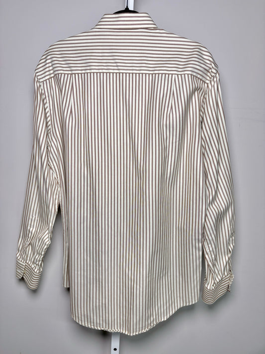 Mens Size L Ermenegildo Zegna Brown, Bone Cotton Striped Men's Shirt