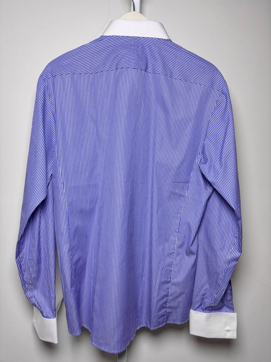 Mens Size 16 PINK Thomas Pink Jermyn Street Lond Blue, White Cotton Stripe Shirt