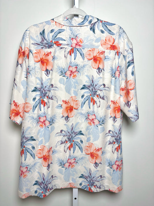 Mens Size XL/Tall Tommy Bahama Cream, Peach, Blue Silk Hawaiian/Tropical Shirt