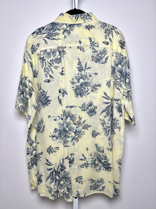 Mens Size XL 120% Lino Yellow, Blue Linen Fruit/Floral Men's Shirt