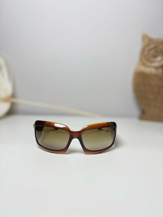 Brown, Gold Tortoise Shell Prada Wraparound Sunglasses