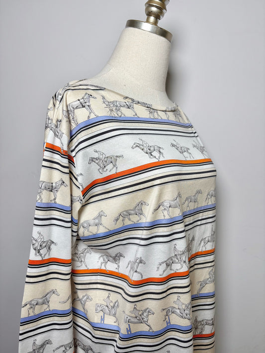Women Size XL Hermes Multi-Color Horse/Equestrian Vintage Cotton T-shirt