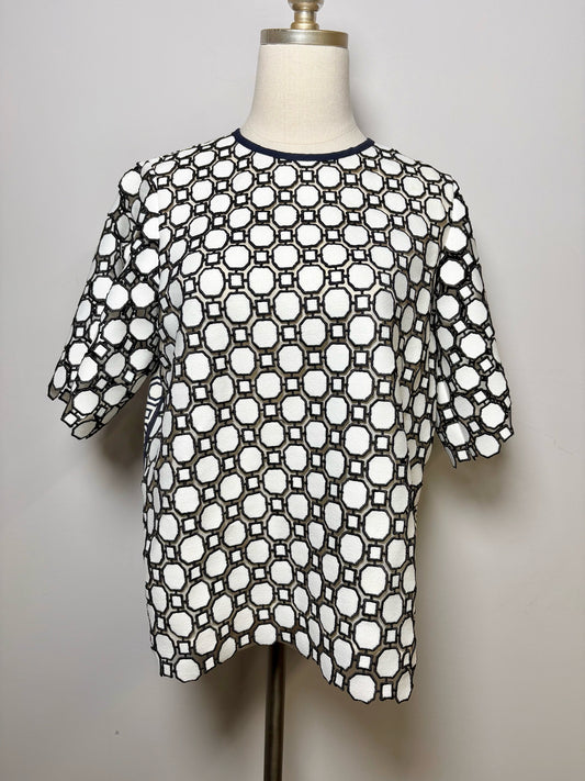 Women Size 4 Tory Burch Blue, White Geometric Embroidered Gloria Shirt