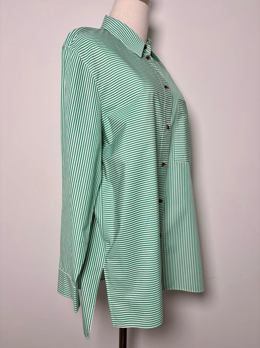 UnavailableLafayette 148 Green Stripe Cotton Shirt