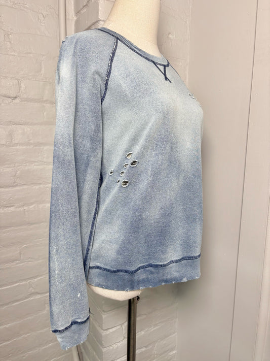 Women Size S Etienne Marcel Los Angeles Blue Acid Wash Cotton Sweatshirt