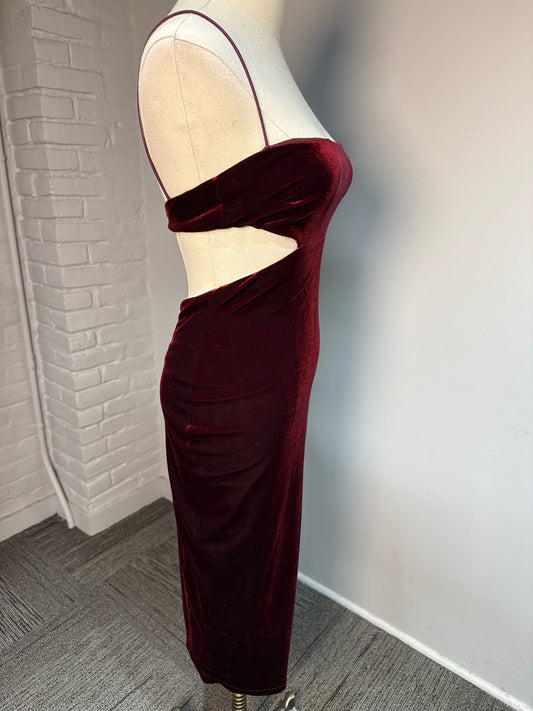 Women Size S Nookie Burgundy Velvet Cocktail Midi Dress
