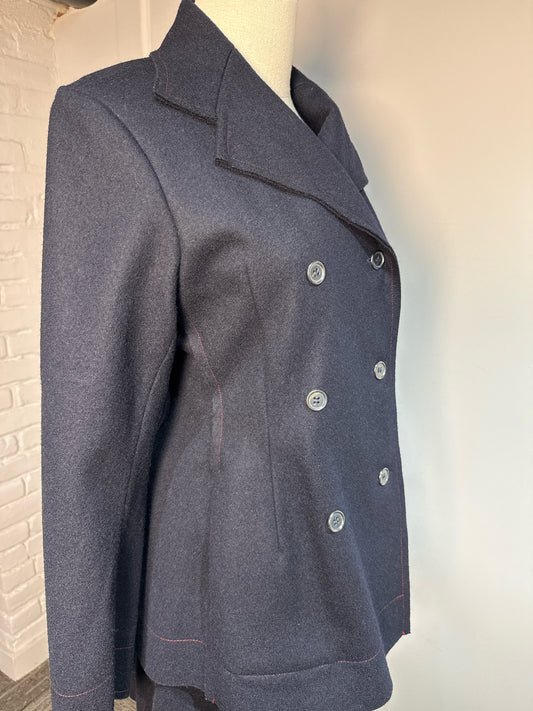 Women Size M Yoshi Kondo Navy Blue Solid Vintage 100% Wool 2 Piece Set