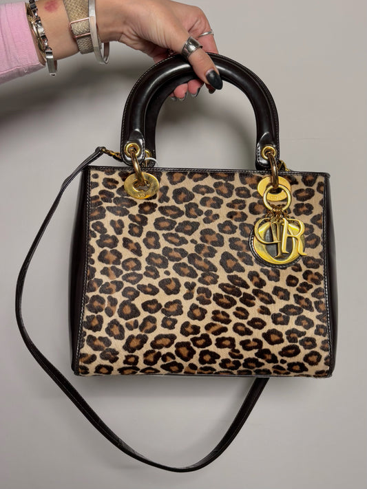 Christian Dior Animal Print Brown Ponyhair Leather Lady Dior Purse
