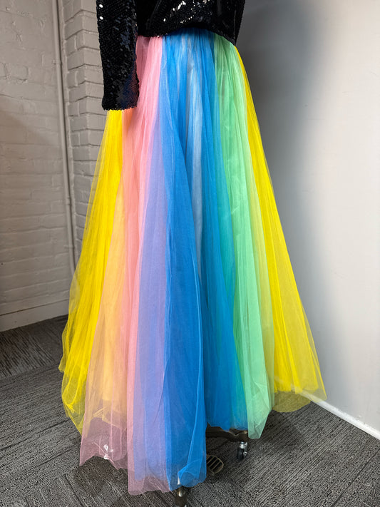 Women Size 2 J. Crew Multicolor Vertical Stripes/Rainbow Tulle NWT Skirt
