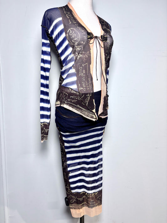 Women Size S (Estimate) Jean Paul Gaultier Blue, White Striped 2 Piece Mesh Set