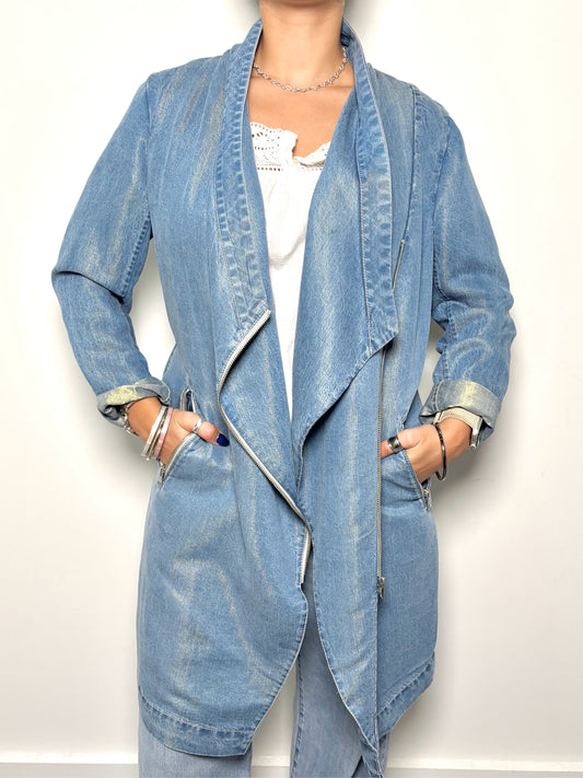 Women Size M SOIA & KYO Washed Blue Solid Tencel Blend Pre-owned Jacket