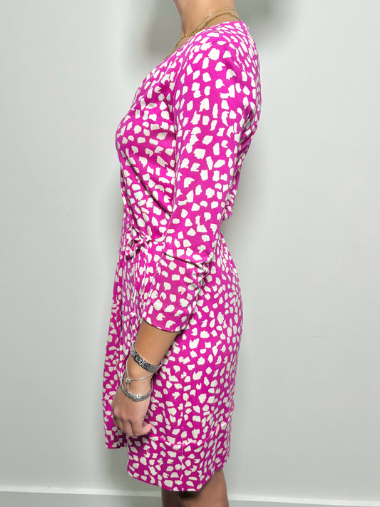 Women Size 8 Diane Von Furstenberg Pink, White Abstract Dots Pure Silk Dress