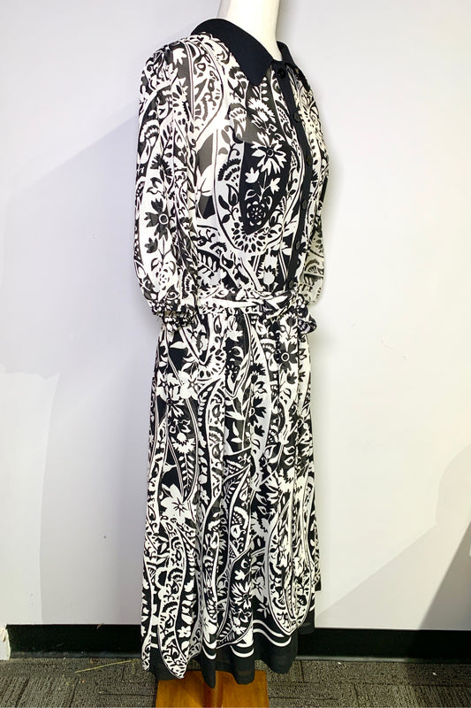 Women Size 20 Rickie Freeman for Teri Jon Black & White Floral Midi Dress