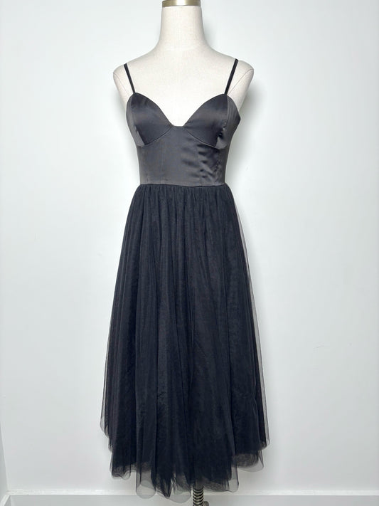 Women Size 6 Fame and Partners Black Tulle Cocktail Midi Dress