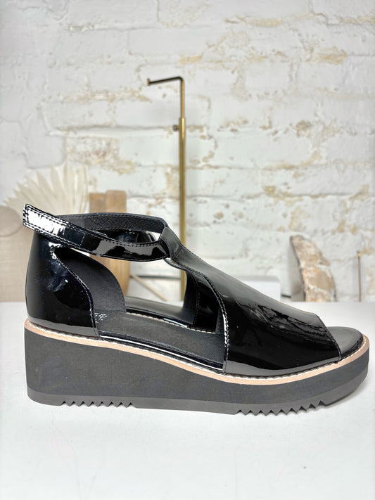 W Shoe Size 7.5 Eileen Fisher Black Leather Patent Not Vintage NWOT Wedges