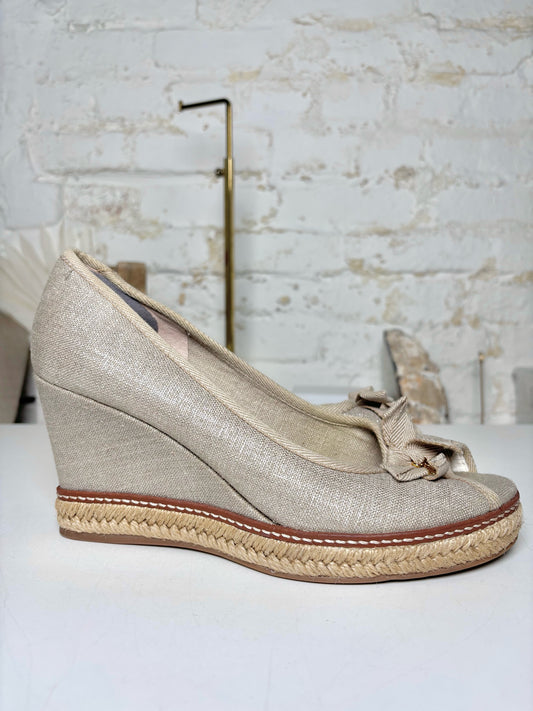 W Shoe Size 8.5 Tory Burch Beige Canvas Wedges