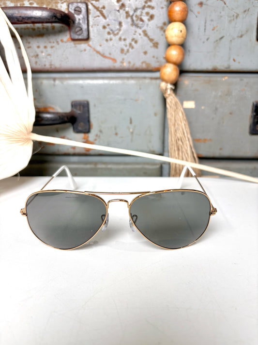 Ray Ban Gold Men's Aviator Large Metal #58014 Sunglasses