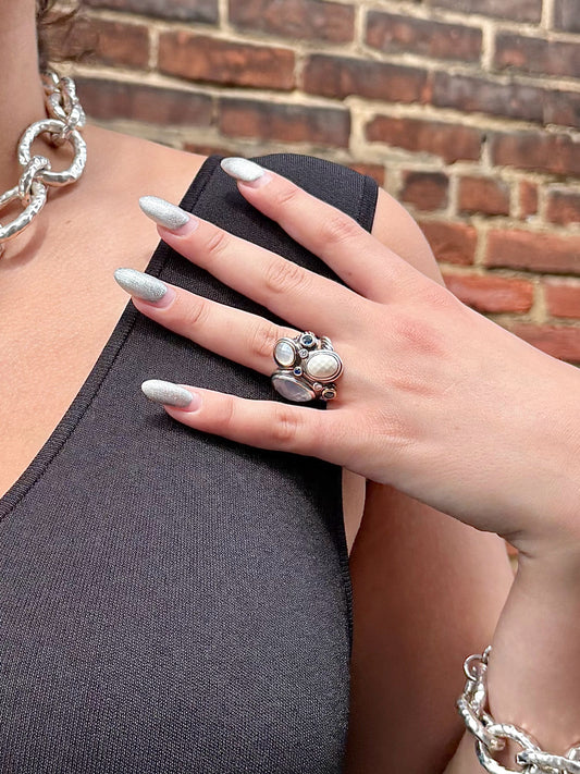 David Yurman White Agate, Moonstone, Quartz Sterling Silver 6 Ring