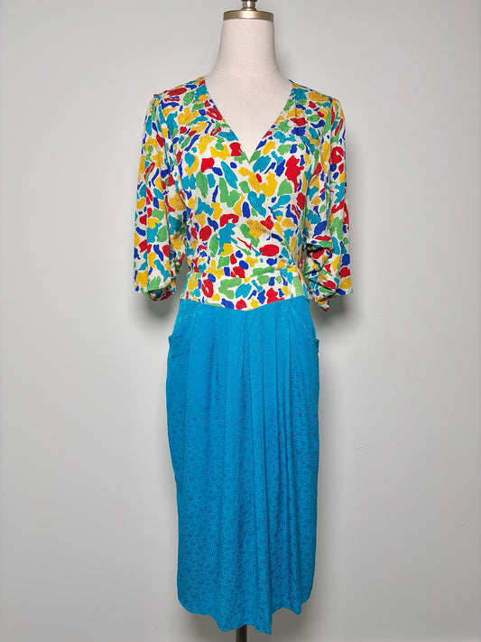 Women Size 6 Louis Feraud Yellow, red, white, green, blue Print Silk Dress