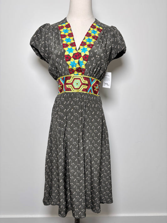 Women Size 4 coreylynncalter Gray, yellow, red Print Silk Dress