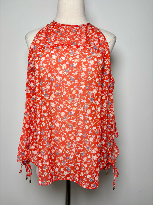 Women Size 6 Veronica Beard Orange, blue, cream Floral Silk NWOT Blouse