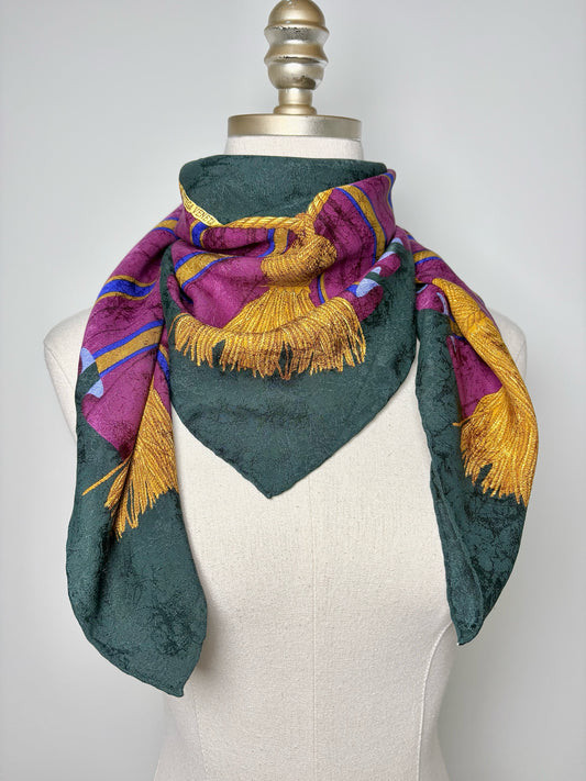 Bottega Veneta Tassels Silk Silk 42" x 42" Green Tassels Print Scarf