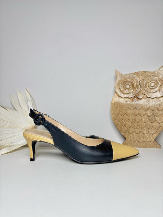 W Shoe Size 8.5 FS/NY Black, Tan Leather Cowhide Pump