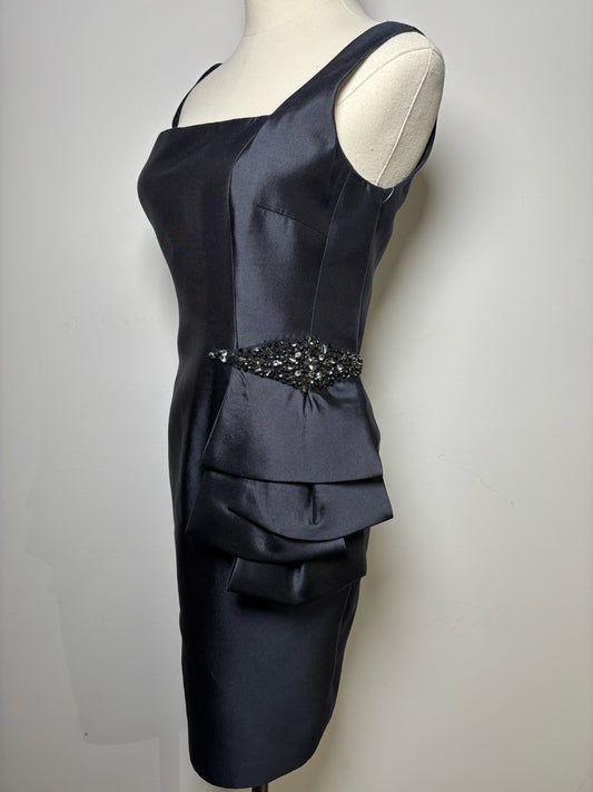 Women Size 14 Rickie Freeman for Teri Jon Navy Solid Silk Dress