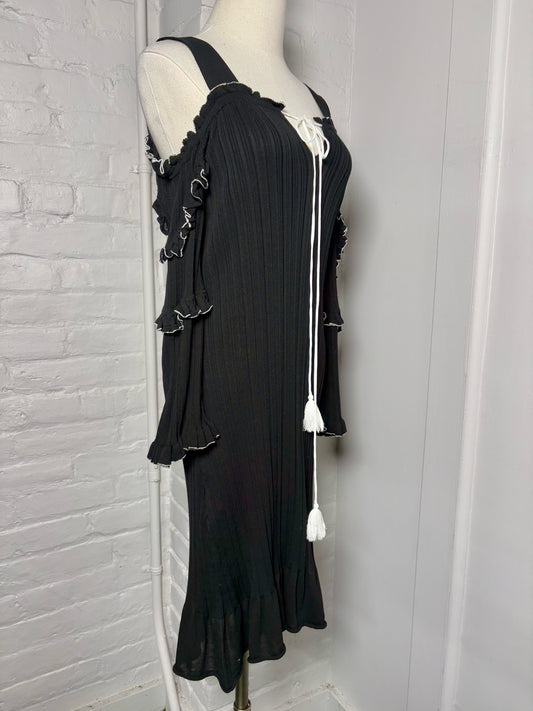 Women Size S/P Derek Lam 10 Crosby Black Solid w/White Piping Lettuce Trim Dress