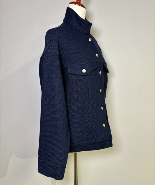 Women Size 42 Bruno Manetti Blue Solid Wool Cropped Blazer