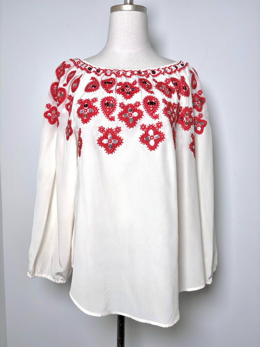 Women Size M Tory Burch White Embroidered Silk Not Vintage Blouse