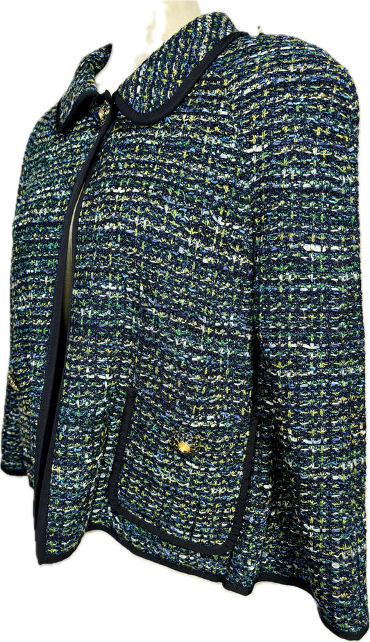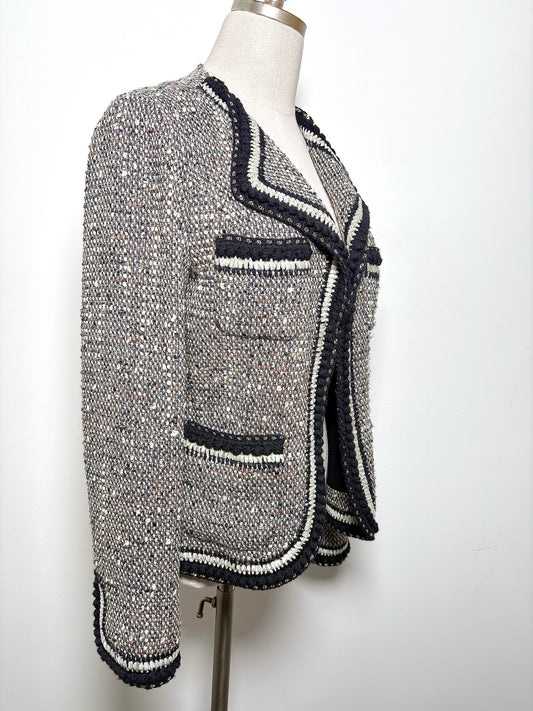 Women Size 8 St. John Couture Black, White Boucle Virgin Wool Blend Jacket