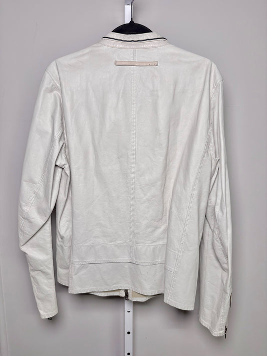 Vintage Prada White Leather Solid Men's Size 52 Moto Jacket
