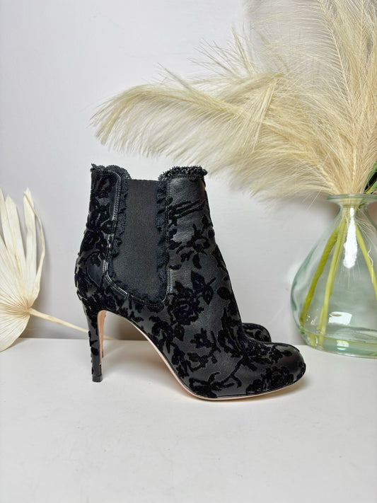 W Shoe Size 6 Valentino RED Black Velvet Cowhide Boots
