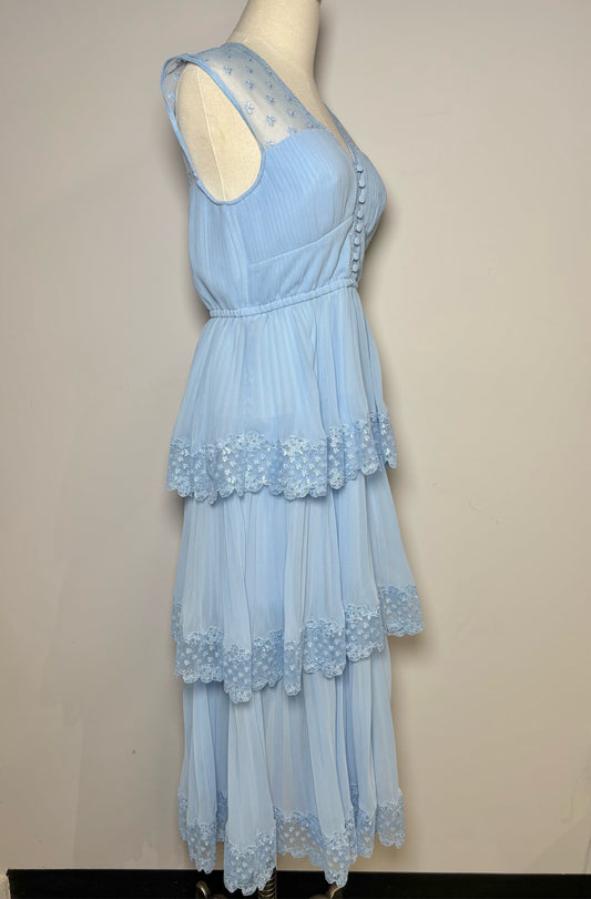 Women Size M Self-Portrait Baby Blue SolidTiered Midi Dress