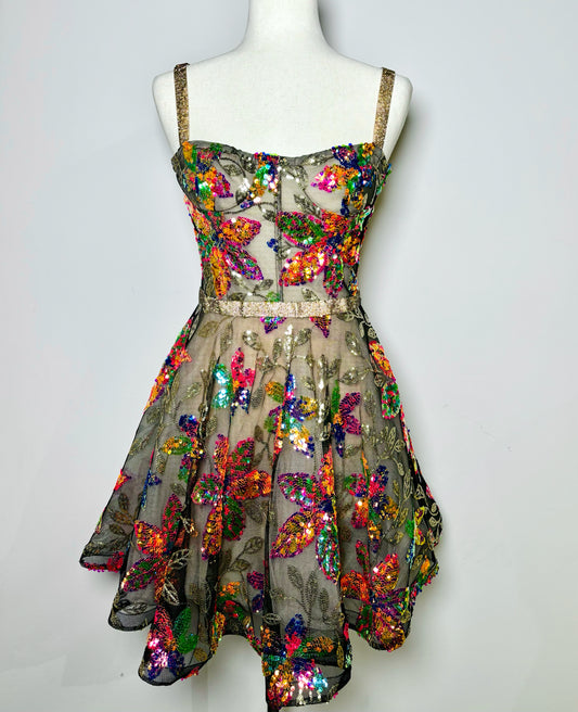 Women Size XS Bronx & Banco Multi-Color Sequins Party Tulle Dress