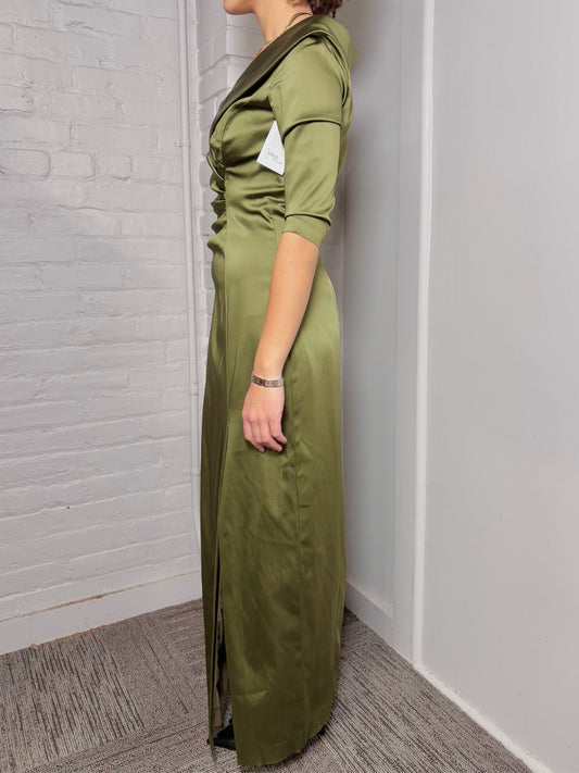 Women Size 6 Kay Unger Olive Green Midi Cocktail Dress