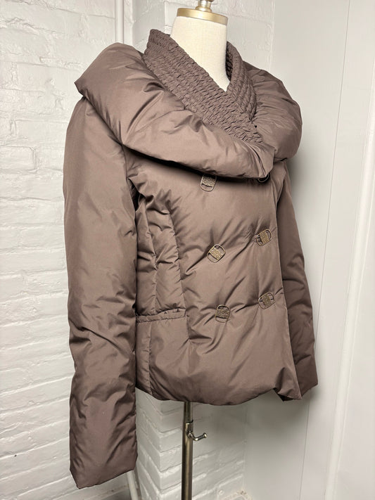 Women Size 48 (S) Salvatore Ferragamo Brown Polyester, Goose Down Puffer Jacket