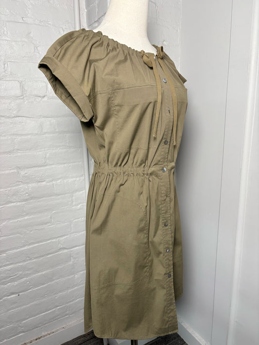 Women Size 0 Theory Olive Solid Cotton Dress
