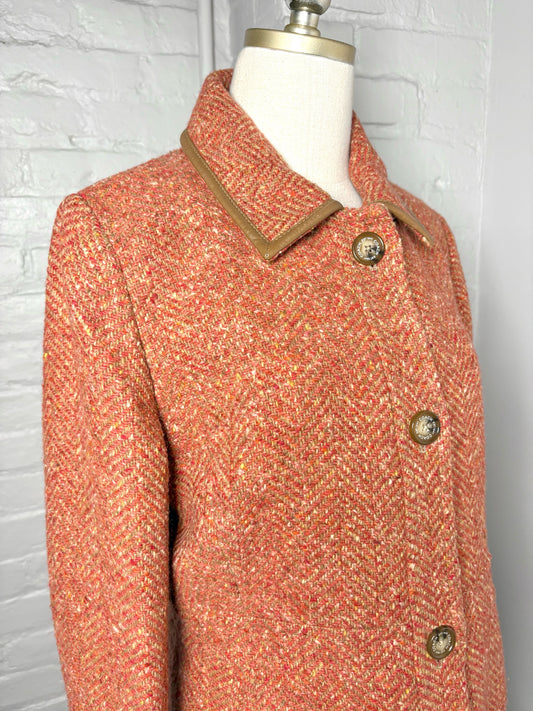 Women Size L Coach Rust Orange Dress Coat w/Leather Trim