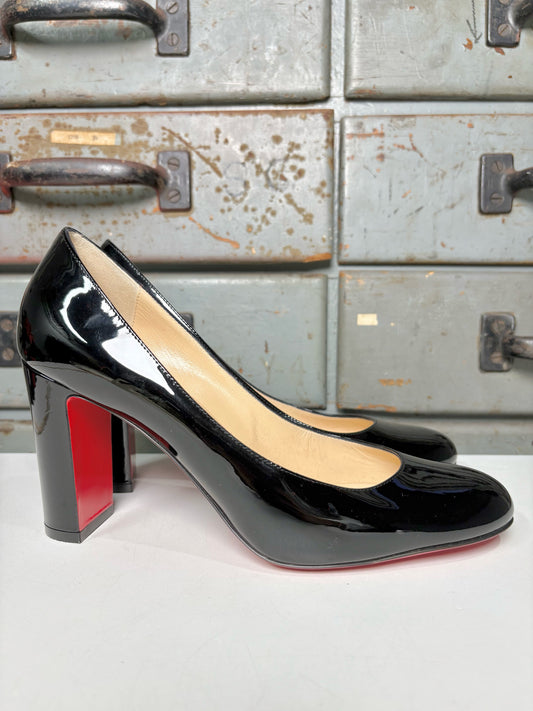 W Shoe Size 38 Christian Louboutin Black Leather Patent Heels
